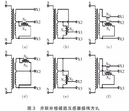圖3(f)接線辦法,滿匝和抽頭的過失補(bǔ)償值可分別按式(3)和式(5)核算。